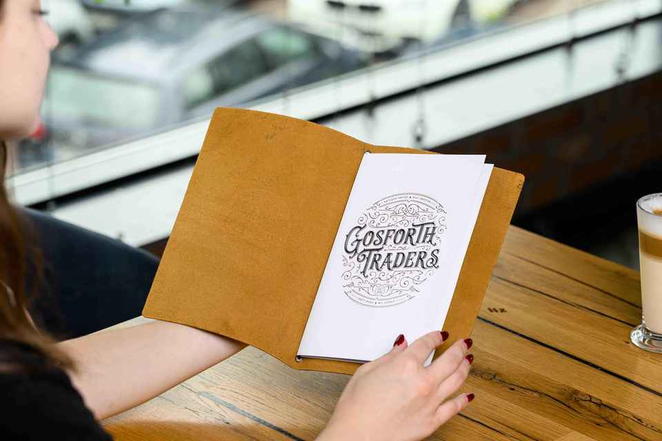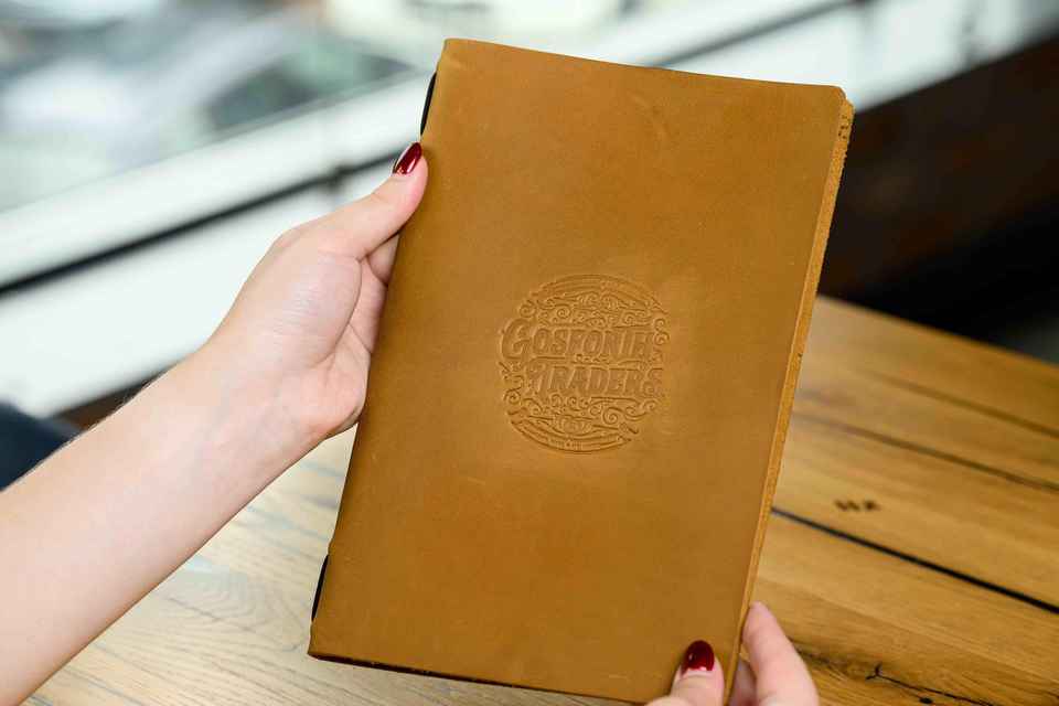 ที่ใส่เมนูหนังแท้พับได้ ป้องกันรอยขีดข่วน สำหรับร้านอาหาร คาเฟ่ วัสดุคุณภาพพรีเมียม พร้อมโลโก้สั่งทำ รุ่น LMC-0066