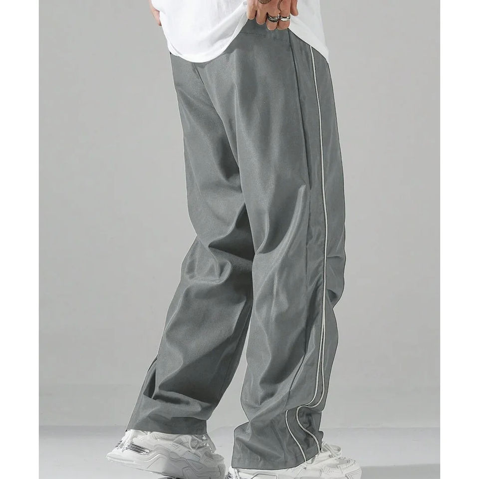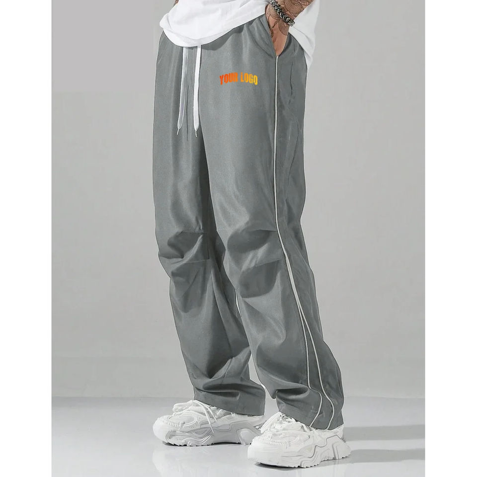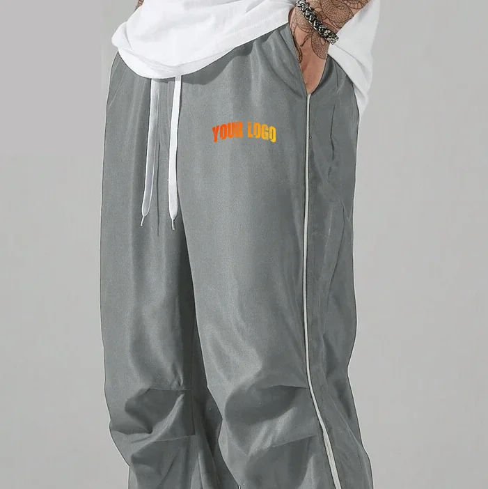 กางเกงวอร์มไนลอนทรงขาบานมีแถบลาย กางเกงลำลองกันลม แห้งเร็ว ระบายอากาศได้ดี เป็นมิตรกับสิ่งแวดล้อม น้ำหนักเบา พร้อมโลโก้แบบกำหนดเอง