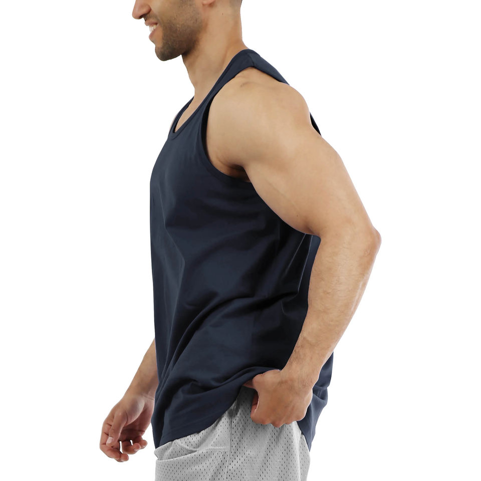 เสื้อกล้ามผู้ชายผ้าคอตตอนผสมโพลีเอสเตอร์ 190 GSM ทรงหลวม แห้งเร็ว พิมพ์โลโก้ได้ตามต้องการ เหมาะสำหรับออกกำลังกาย ฟิตเนส เล่นกีฬา