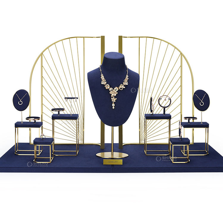 ชุดจัดแสดงเครื่องประดับวินโดวส์ทำจากหนัง PU แท่นโชว์เครื่องประดับสร้อยคอเคาน์เตอร์แบบหรูหราโลโก้ตามสั่ง