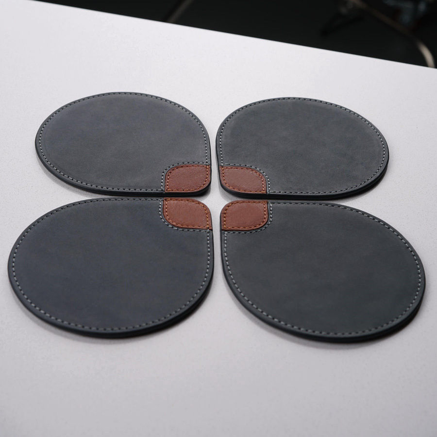 แผ่นรองจานอาหารค่ำหนังแท้สองด้าน ขนาด 4 นิ้ว กันลื่น ดีไซน์ทันสมัย สำหรับร้านอาหาร พร้อมโลโก้สั่งทำพิเศษ สีตามสั่ง
