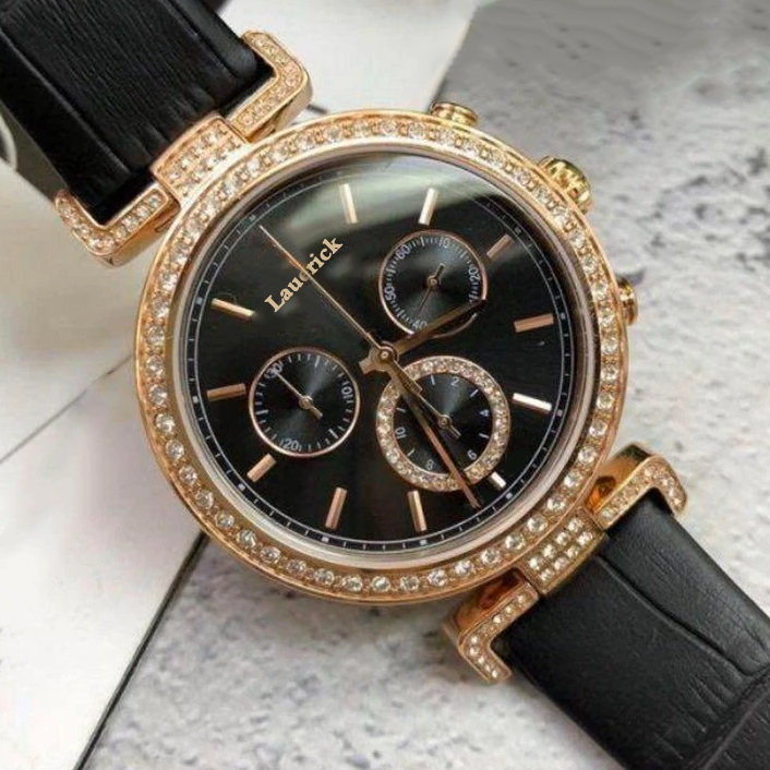 นาฬิกาควอตซ์ผู้หญิงหรูหราประดับเพชรโมอิสซาไนต์ ขนาด 38 มม. ตัวเรือนสแตนเลส กระจกแซฟไฟร์ สายหนังแท้เรียบง่าย พร้อมโลโก้สั่งทำพิเศษ