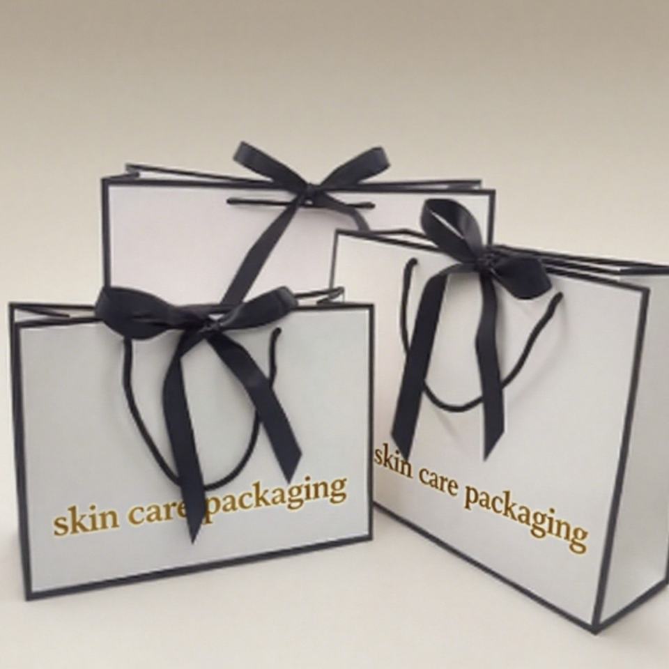 ถุงกระดาษหูหิ้วพิมพ์โลโก้สุดหรู พร้อมริบบิ้นผูกโบว์ สำหรับบรรจุภัณฑ์เครื่องสำอาง
