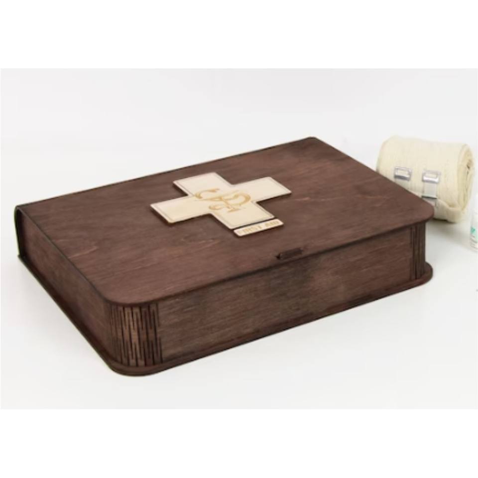 กล่องชุดปฐมพยาบาลไม้หรูหราพร้อมโลโก้สั่งทำ กล่องไม้ฉุกเฉินแบบตัดด้วยเลเซอร์ เป็นมิตรกับสิ่งแวดล้อม สำหรับความปลอดภัยในสถานที่ทำงาน
