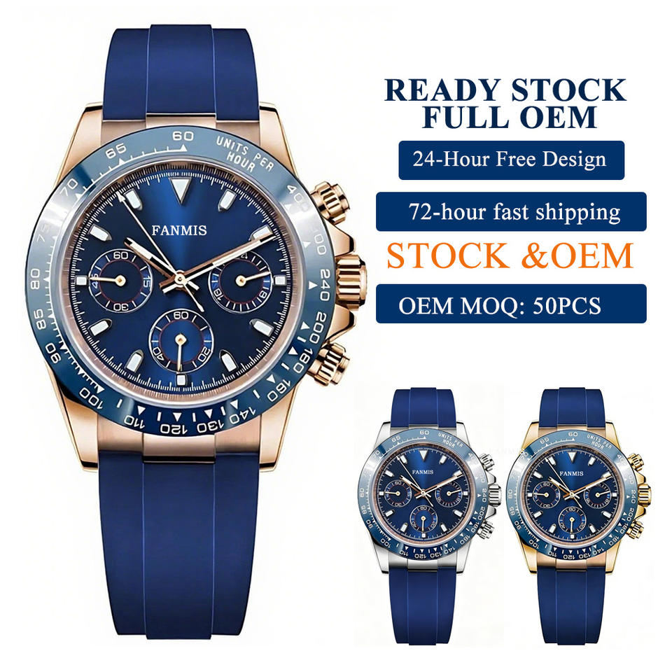 นาฬิกาควอตซ์หรูหราพร้อมโลโก้สั่งทำ ตัวเรือนสแตนเลส กระจกแซฟไฟร์ สายซิลิโคน กลไก VK63 โครโนกราฟ กันน้ำ