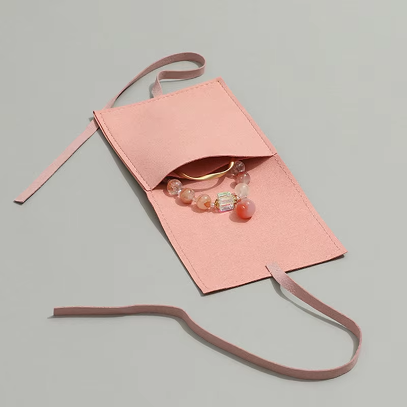 กระเป๋าใส่เครื่องประดับที่เป็นมิตรต่อสิ่งแวดล้อมพร้อมริบบิ้นกระเป๋าเครื่องประดับไมโครไฟเบอร์สำหรับต่างหูสร้อยคอ