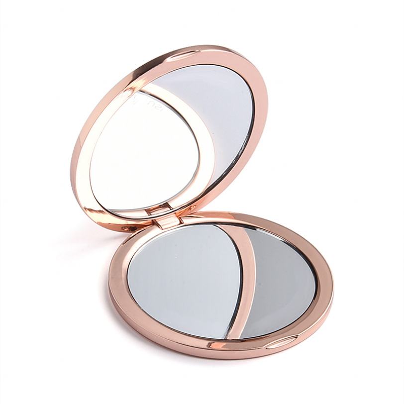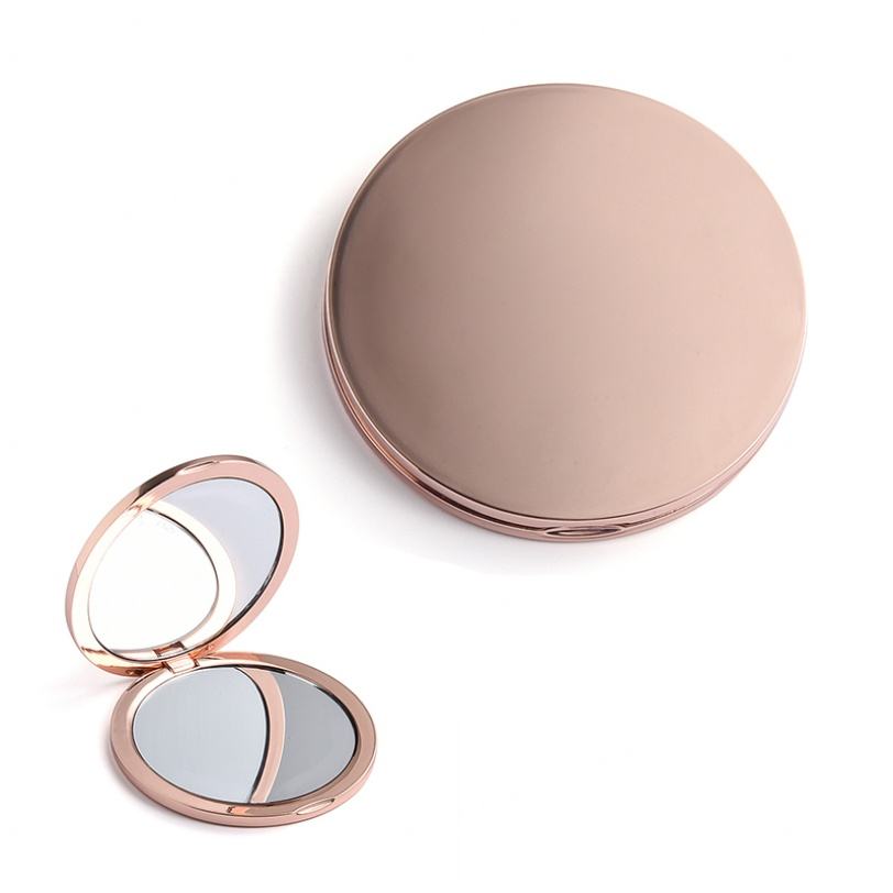 กระจกแต่งหน้าพกพาแบบสองด้าน โลหะปั๊มนูนลายทอง รูปทรงกลม หรูหรา สกรีนโลโก้ได้