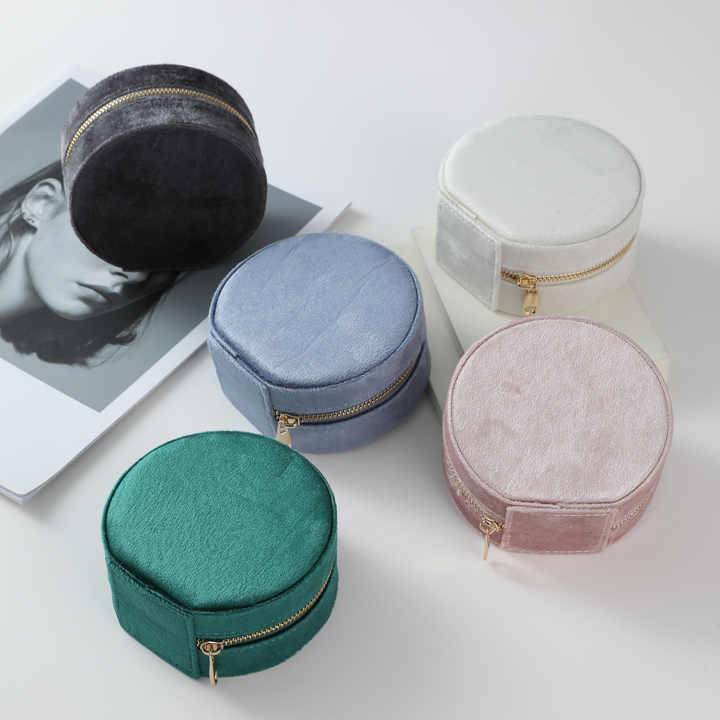 กล่องใส่เครื่องประดับกำมะหยี่ทรงกลมแบบมีซิป พิมพ์โลโก้ได้ หรูหรา คุณภาพสูง ความจุเยอะ เหมาะสำหรับใส่สร้อยคอ ของขวัญ