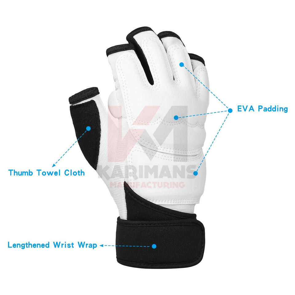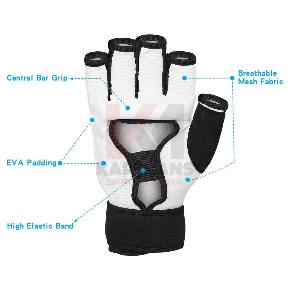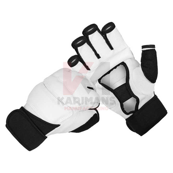 ถุงมือ MMA สำหรับฝึกซ้อม ลายโลโก้สั่งทำ สีดำขาว หนังสังเคราะห์ ถุงมือกีฬา ถุงมือฝึกซ้อมในยิม ถุงมือศิลปะการต่อสู้