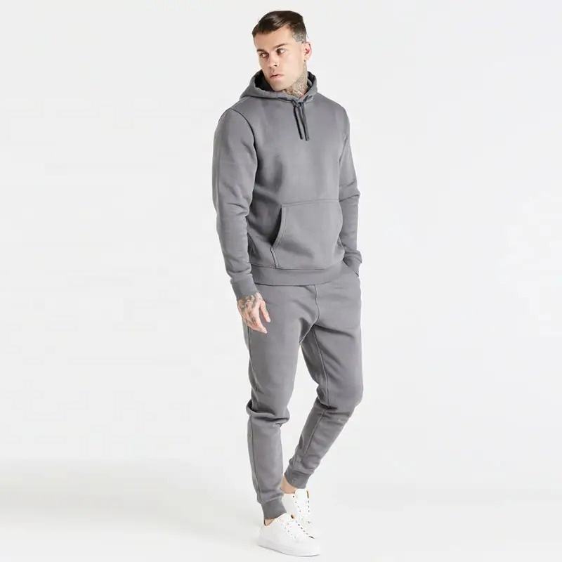 Custom Logo Man Hoodies Set Grey Tracksuits Long Sleeve 2 Pcs Hoodie Set Tracksuit for Men