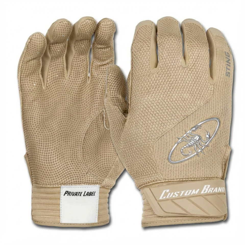 ถุงมือตีเบสบอลแบบมีโลโก้สั่งทำพิเศษ ราคาขายส่ง วัสดุหนังแพะ ฝ่ามือกันลื่น ถุงมือตีซอฟต์บอล