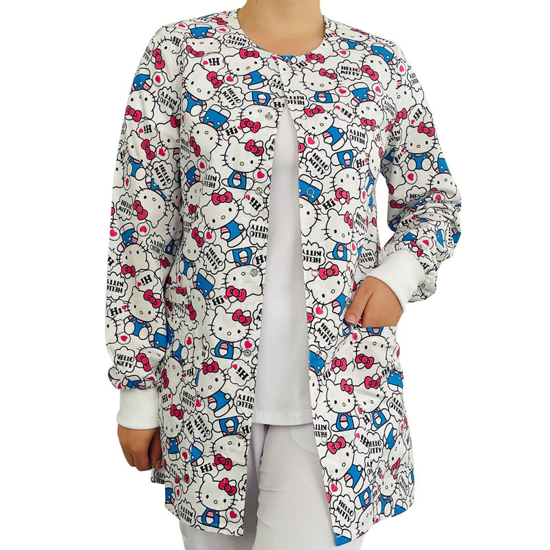 เสื้อแจ็คเก็ตสครับพิมพ์ลายโลโก้ตามสั่งสำหรับงานแพทย์ ชุดยูนิฟอร์มแพทย์ พยาบาล คลินิก โรงพยาบาล ระบายอากาศได้ดี สำหรับผู้หญิง