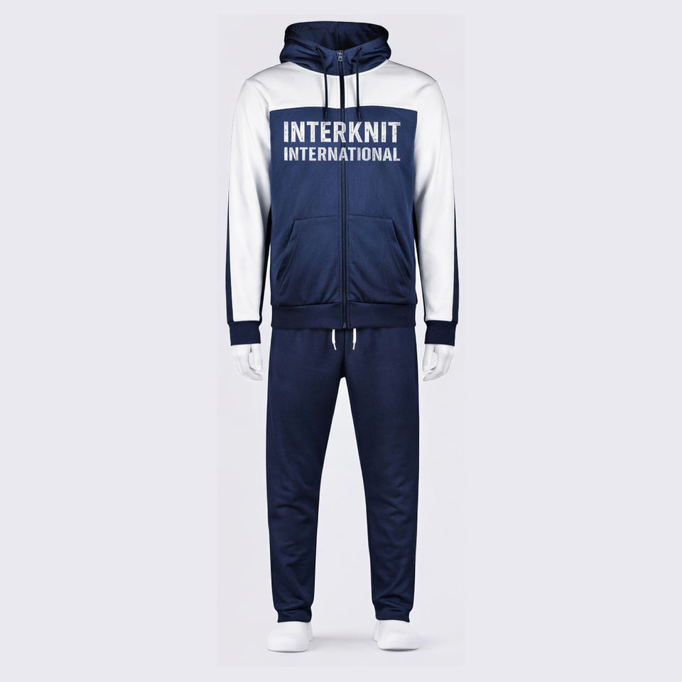 ชุดเซ็ตฮู้ดดี้ซิปเต็มตัวพิมพ์ลายวินเทจสีน้ำเงินฟอกกรดพร้อมโลโก้สั่งทำสำหรับผู้ชาย ชุดวอร์มกีฬาโพลีเอสเตอร์ขายส่งแบบ OEM