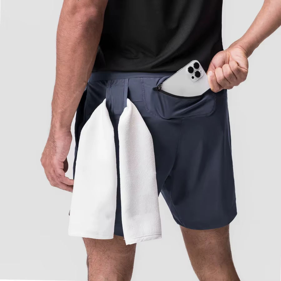 กางเกงขาสั้นกีฬาผู้ชายลำลองพิมพ์โลโก้ได้ เอวกลาง ระบายอากาศได้ดี ผลิตจากโพลีเอสเตอร์ 100% เหมาะสำหรับการฝึกซ้อม วิ่ง ออกกำลังกาย มีซับในและกระเป๋า
