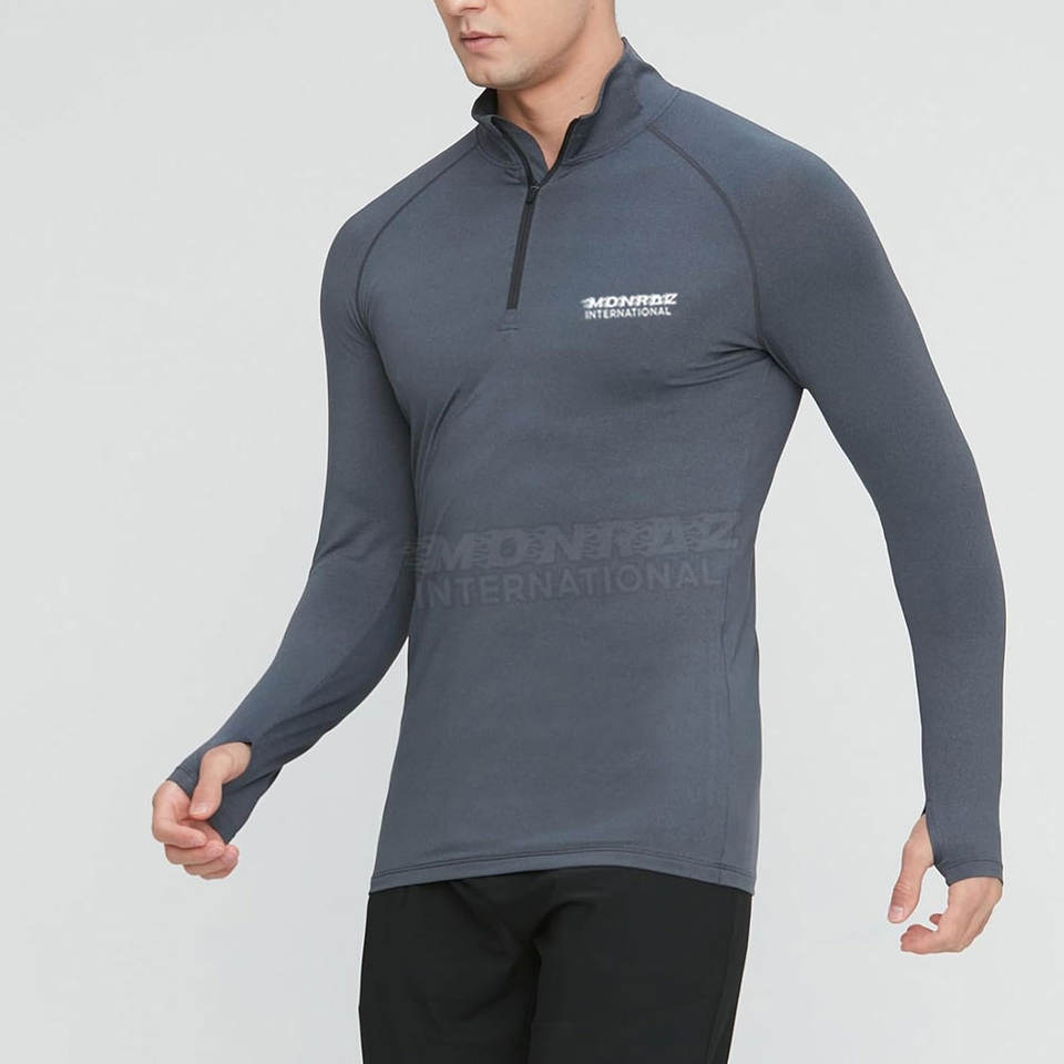 เสื้อยืดรัดกล้ามเนื้อมีซิปครึ่งซิปสำหรับผู้ชายเสื้อยืดรัดกล้ามเนื้อมีซิปครึ่งโลโก้ออกแบบได้ตามต้องการ