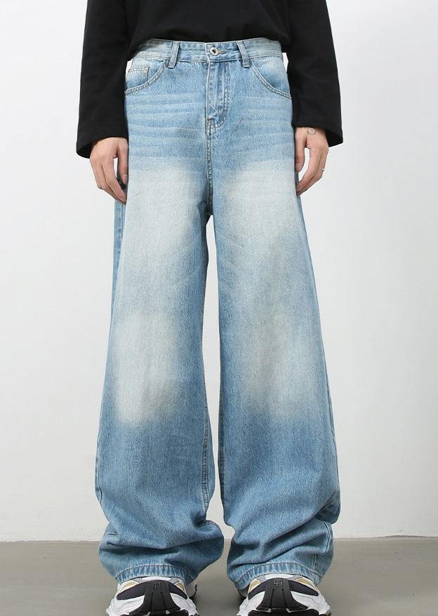 กางเกงยีนส์เดนิมแฟชั่นผู้ชาย สไตล์วินเทจ ทรงตรง ขากว้าง ไซส์ใหญ่ กางเกงยีนส์ทรงหลวมสำหรับผู้ชาย พร้อมโลโก้สั่งทำ
