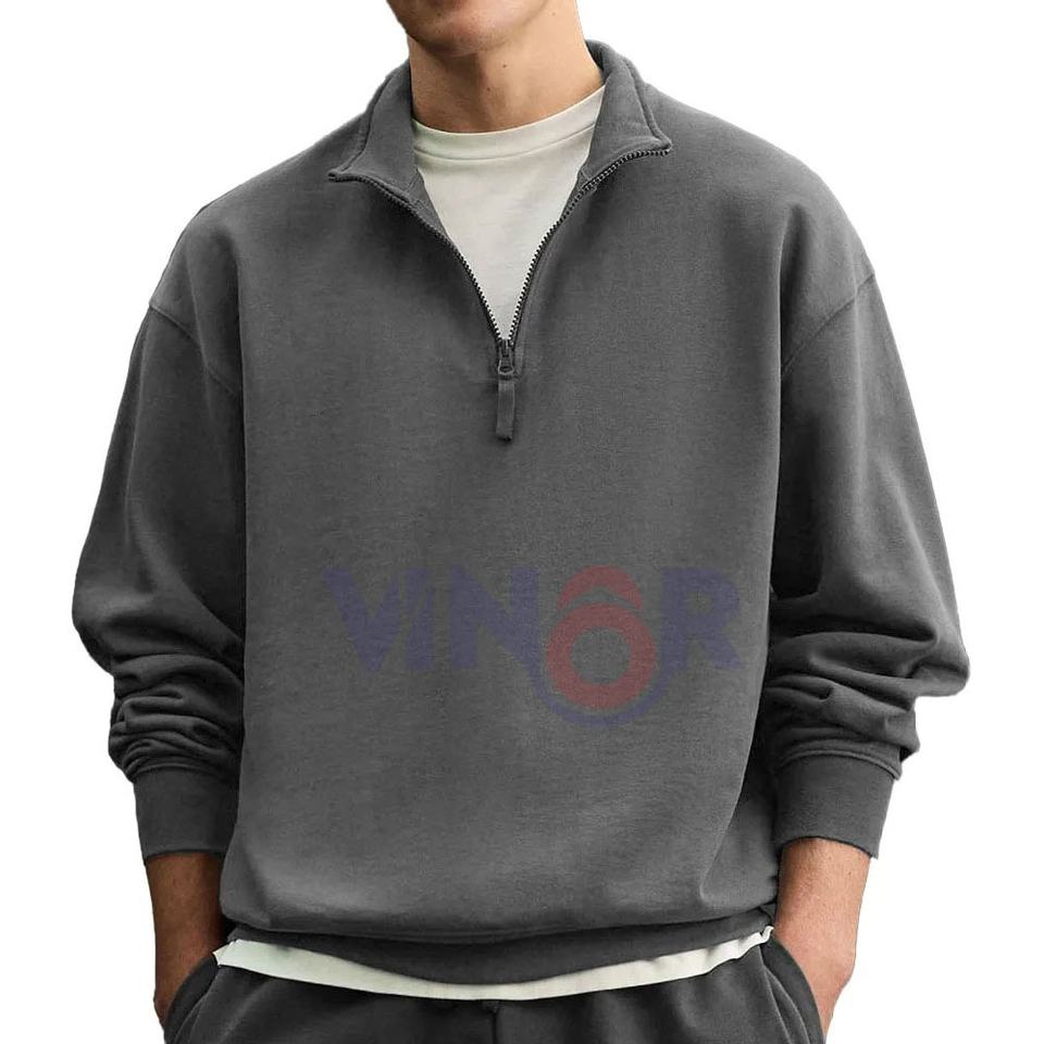 เสื้อกันหนาวแบบสวมหัวมีซิปสำหรับผู้ชายเสื้อสเวตเตอร์แบบสวมหัวมีซิปครึ่งคอตั้งไซส์ใหญ่พิเศษทำจากผ้าฝ้ายออกแบบโลโก้ได้ตามต้องการ