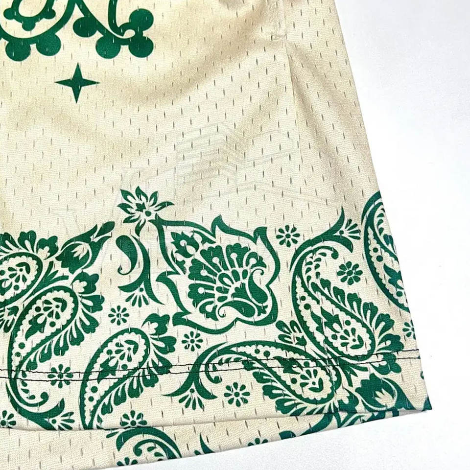 กางเกงขาสั้นเอวยางยืดผ้าตาข่าย/โพลีเอสเตอร์สไตล์ไฮสตรีทสำหรับผู้ชาย ลายพิมพ์ดิจิทัลแบบเรียบ บริการ OEM รับทำโลโก้ตามสั่ง เอวกลาง