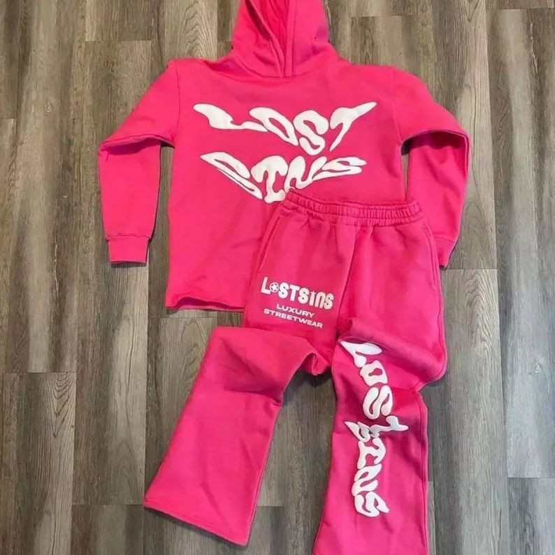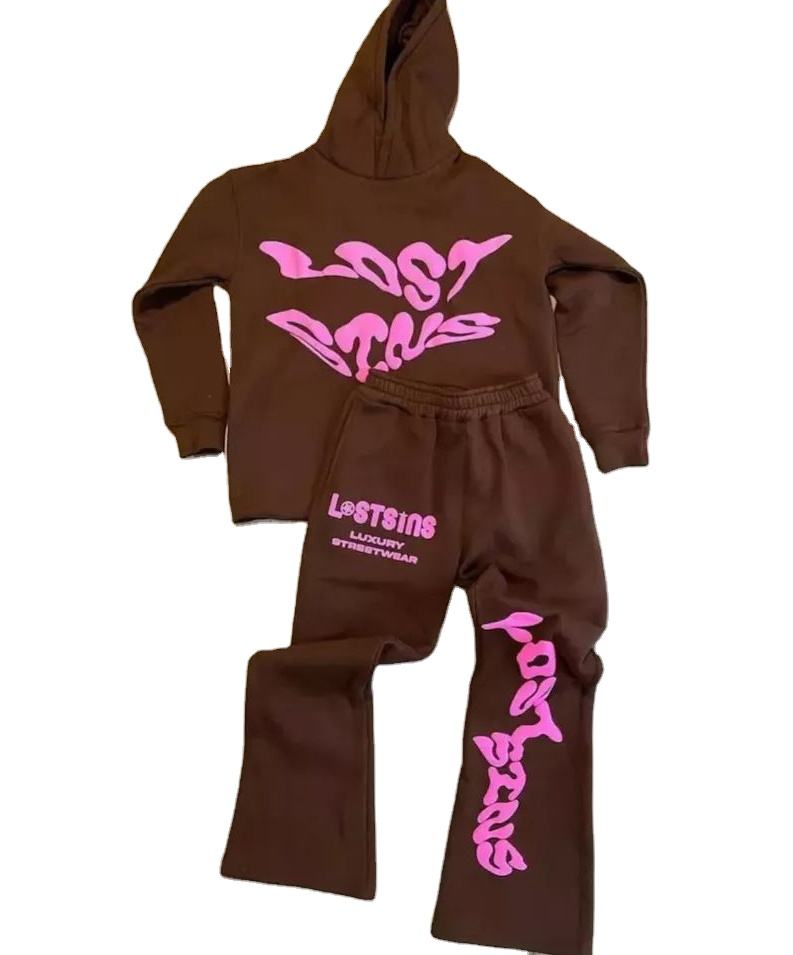 ชุดวอร์มกางเกงวอร์มมีฮู้ดสำหรับผู้ชายชุดวอร์มและเสื้อมีฮู้ดสำหรับทุกเพศชุดวอร์มพิมพ์ลายกางเกงขาบานโลโก้ออกแบบได้ตามต้องการ