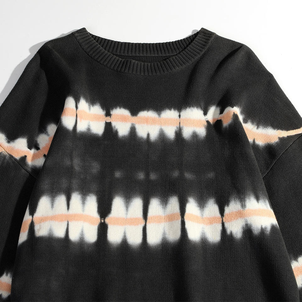 สเวตเตอร์แบบสวมหัวของผู้ชายเสื้อถักแบบสวมหัวคอกลมแขนยาวผ้าคอตตอนถักเสื้อสเวตเตอร์ออกแบบลายมัดย้อมโลโก้ได้ตามต้องการ