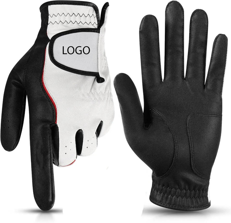 ถุงมือกอล์ฟสีขาวสีดำสำหรับผู้ชายโลโก้ออกแบบได้ตามต้องการหนัง Cabretta ด้านขวามือสีปาล์มมีคุณสมบัติเป็นวัสดุขนาดมาตรฐาน