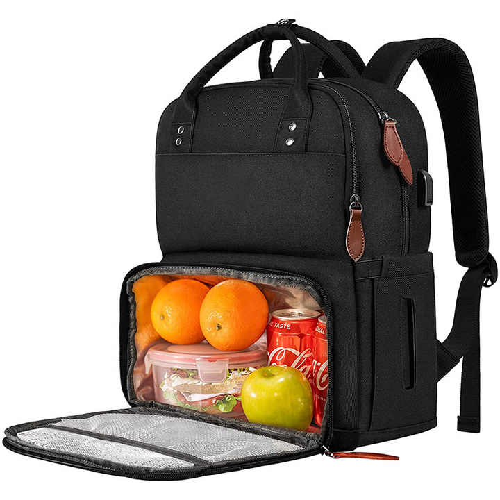 กระเป๋าเป้สะพายหลังใส่แล็ปท็อปแบบกันน้ำ วัสดุโพลีเอสเตอร์นุ่มสบาย ทันสมัย สำหรับผู้ชายและผู้หญิง พร้อมช่องเก็บอุณหภูมิสำหรับอาหารกลางวัน ความจุ 24 ลิตร และกระเป๋าใส่อาหารกลางวัน รับสกรีนโลโก้ได้