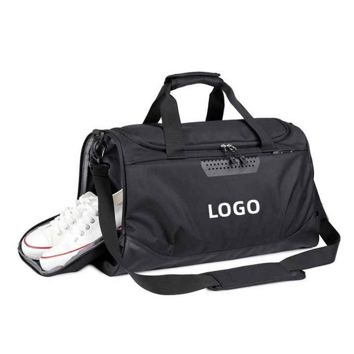 กระเป๋าออกกำลังกายผู้ชายแบบมีโลโก้สั่งทำ กระเป๋าเดินทางแบบถือ ผ้าไนลอน สำหรับใส่รองเท้าเปียก กันน้ำ ผ้าอ็อกซ์ฟอร์ด สำหรับฟิตเนส โยคะ