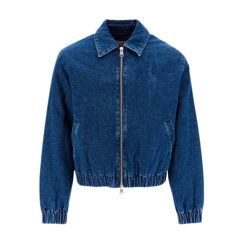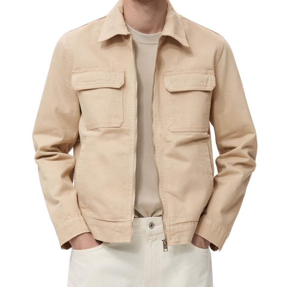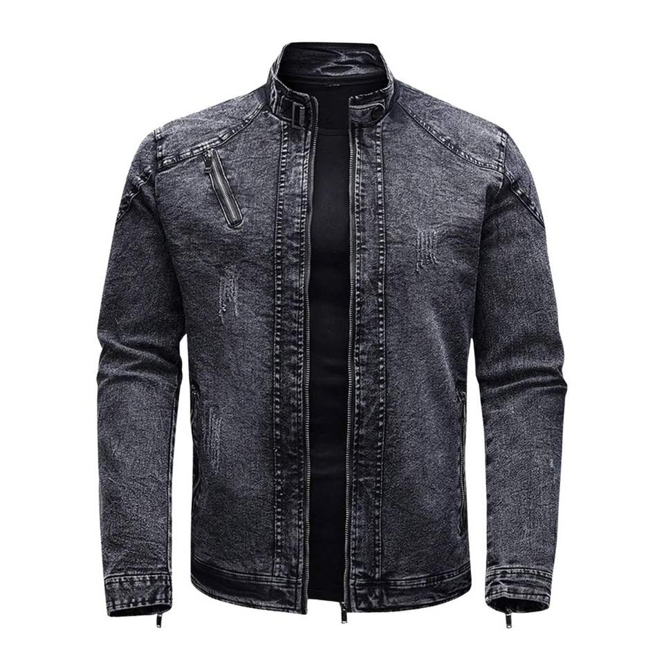แจ็คเก็ตยีนส์ผู้ชายแบบมีซิป สไตล์ลำลอง พิมพ์โลโก้ได้ ทรงปกติ ทันสมัย เหมาะสำหรับกิจกรรมกลางแจ้ง แฟชั่นประจำวัน สไตล์คลาสสิก สตรีทสไตล์