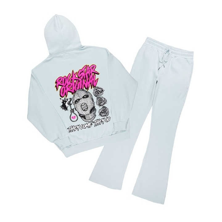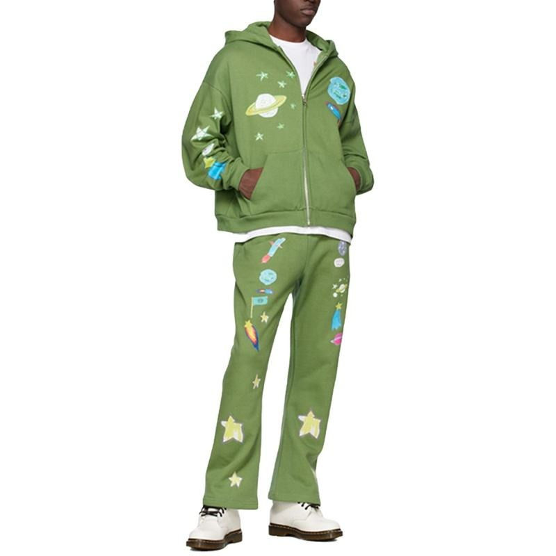 ชุดวอร์มสไตล์สตรีทสำหรับผู้ชายชุดวอร์มสำหรับฤดูหนาวชุดวอร์มกางเกงซ้อนกันลายพลุออกแบบโลโก้ได้ตามต้องการ