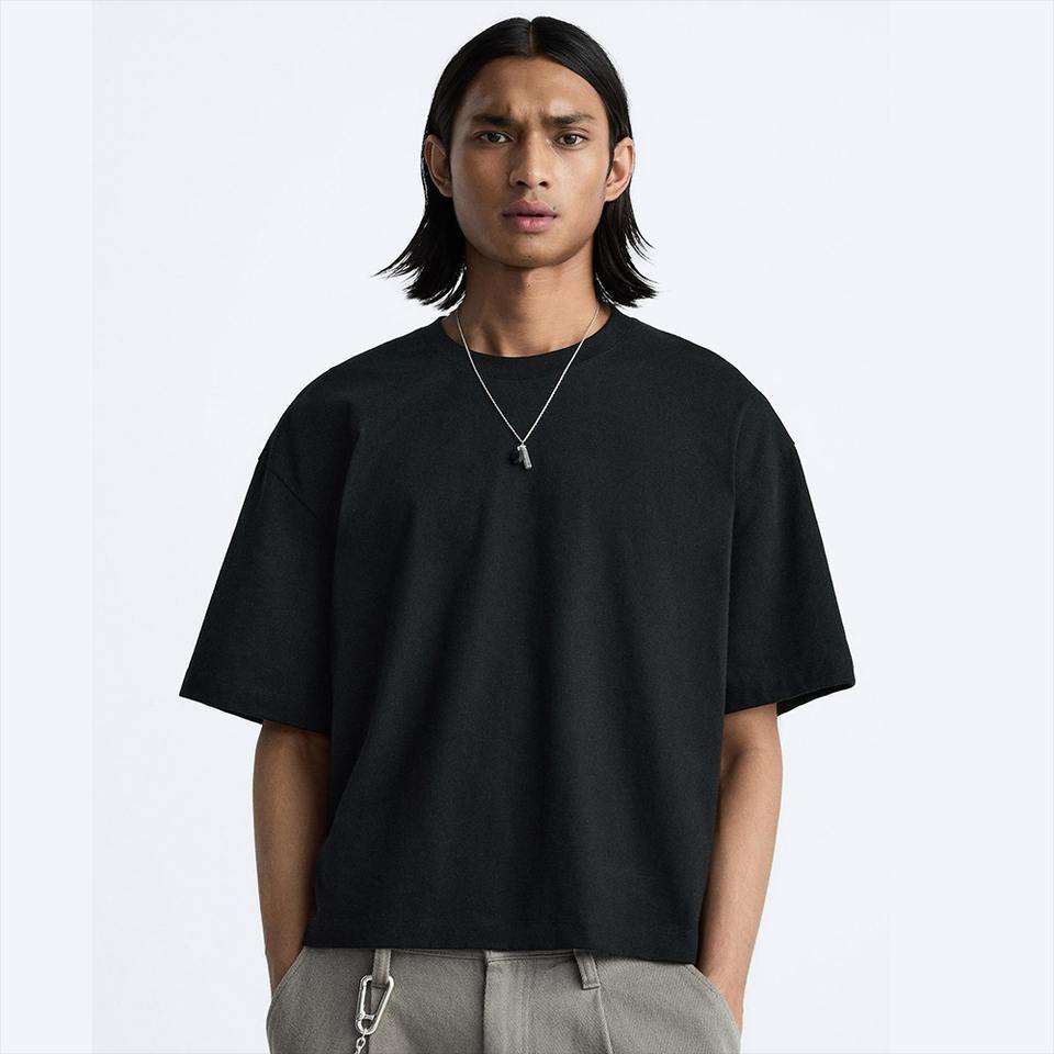 เสื้อครอปผ้าฝ้ายขนาดใหญ่สำหรับผู้ชายเสื้อครอปไซส์ใหญ่พิเศษเข้ารูปบ็อกซี่ผ้าถักแบบทางการโลโก้ออกแบบได้ตามต้องการ