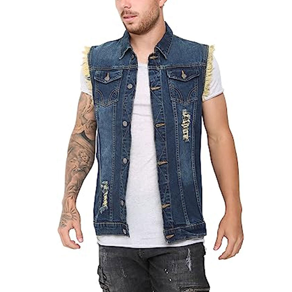 เสื้อกั๊กยีนส์ผู้ชายคุณภาพสูง 100%