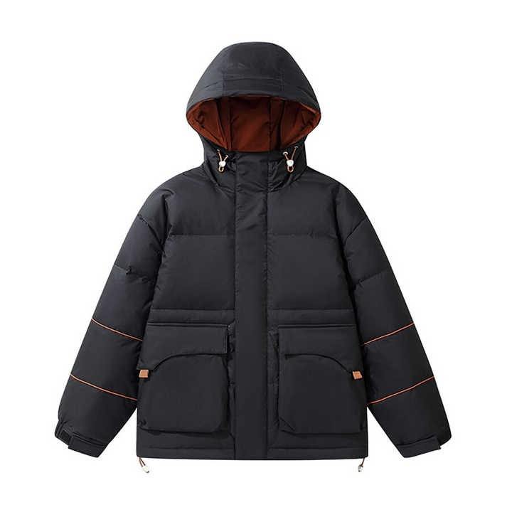 เสื้อแจ็กเก็ตขนเป็ดสำหรับผู้ชายใส่บนถนนและคอตั้งออกแบบโลโก้ได้ตามต้องการสไตล์ไฮสตรีทสำหรับฤดูหนาว