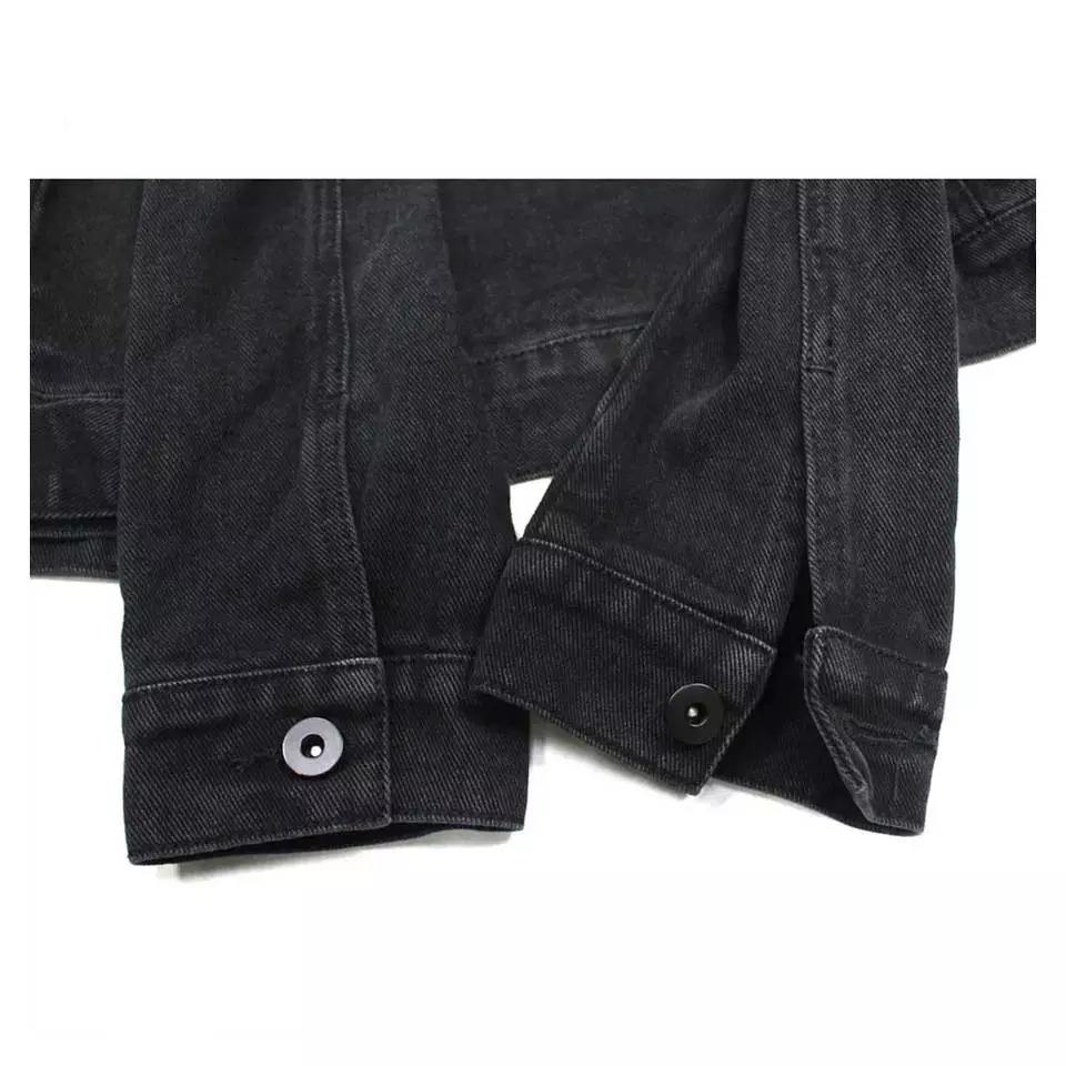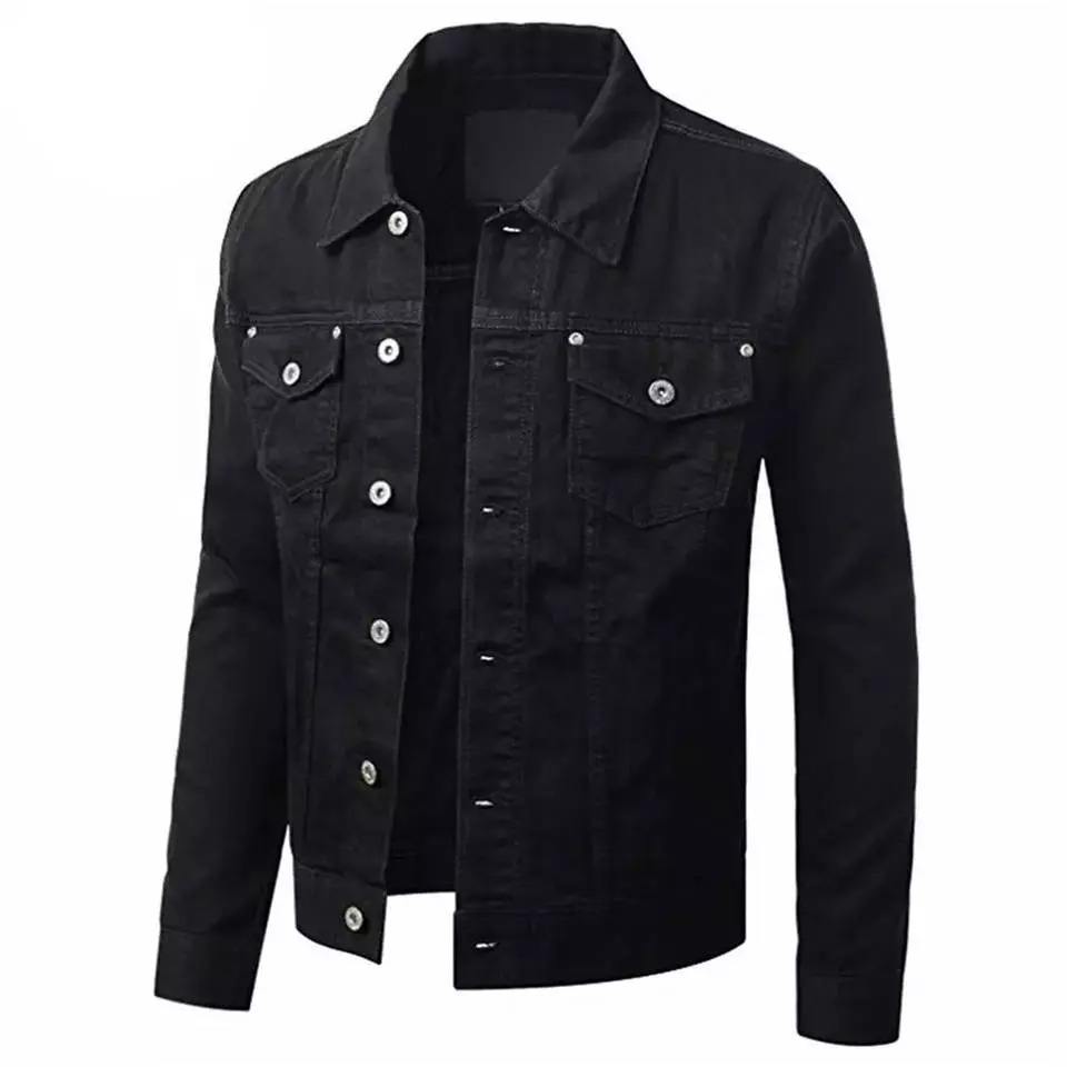 แจ็กเก็ตยีนส์สไตล์ไฮสตรีทของผู้ชายโลโก้ออกแบบได้ตามต้องการมีกระดุมด้านหน้าสำหรับใส่ทำงานในฤดูหนาว