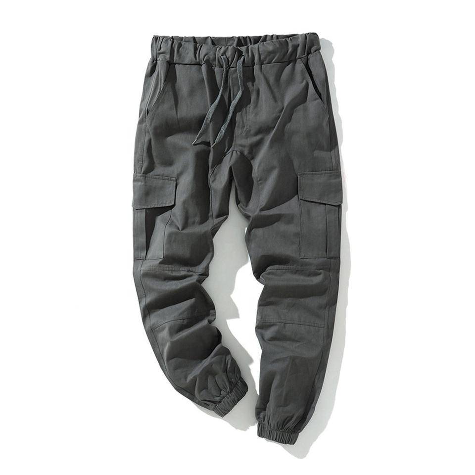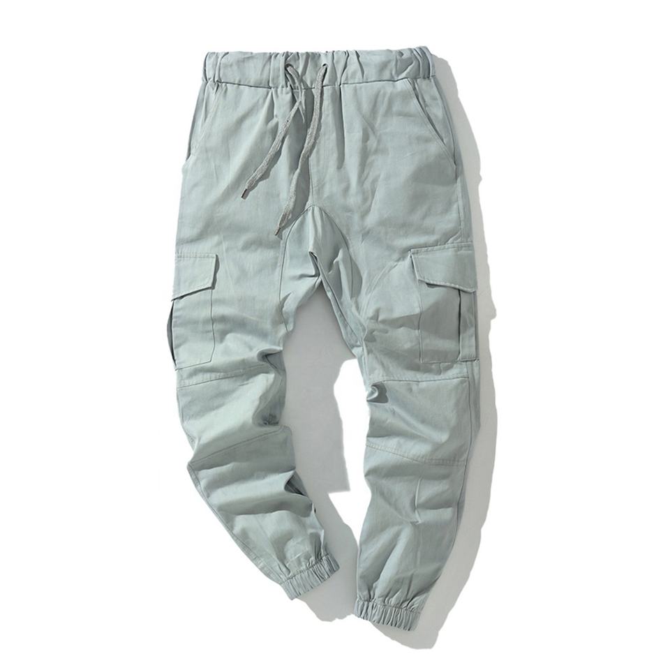กางเกงวิ่งของผู้ชายกางเกงผ้าฝ้ายผสมระบายอากาศมีกระเป๋ามีเชือกผูกเอวสไตล์สตรีท