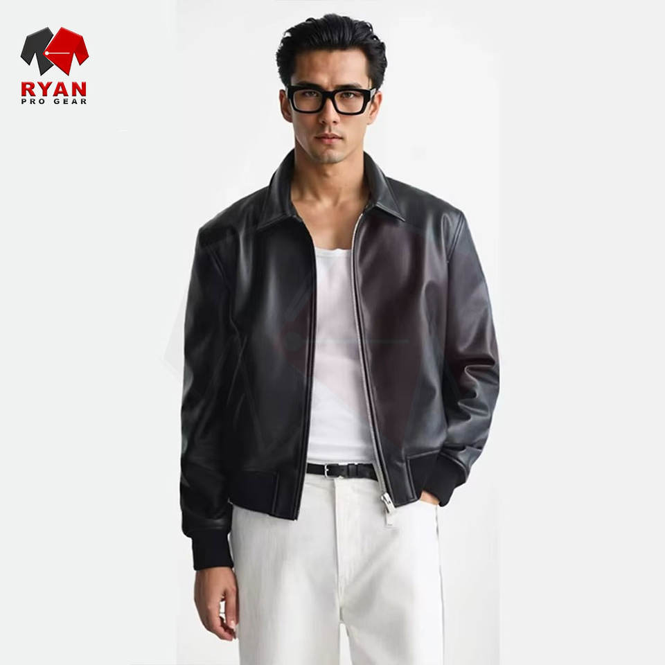 เสื้อแจ็คเก็ตหนังผู้ชายโลโก้สั่งทำ สีพื้น คุณภาพพรีเมียม ดีไซน์โดดเด่น ผู้ผลิตแบบ OEM ODM