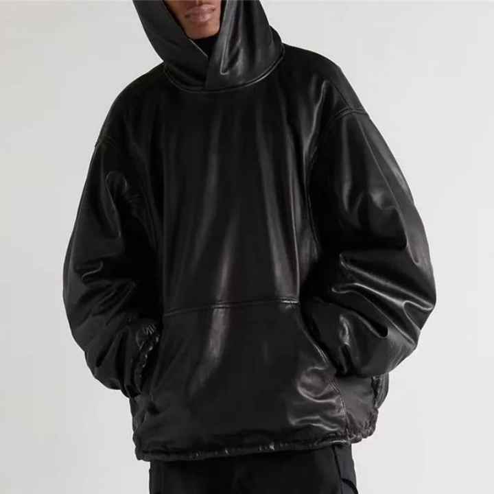 เสื้อแจ็คเก็ตหนังของผู้ชายเสื้อมีฮู้ดเสื้อแนวสตรีทเสื้อสวมหัวหนาเสื้อแจ็คเก็ตหนังมีฮู้ดสำหรับผู้ชายโลโก้ออกแบบได้ตามต้องการ