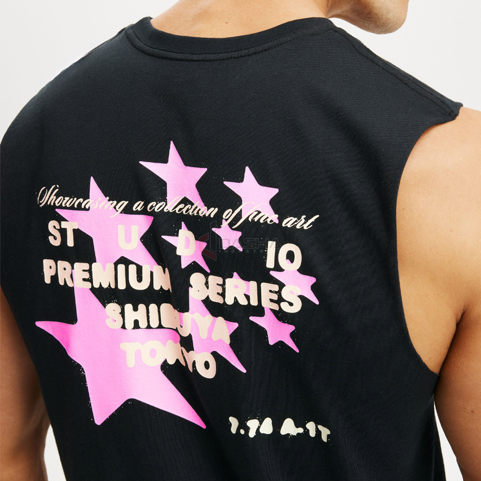 เสื้อกล้ามระบายอากาศได้ดีแห้งเร็วสำหรับผู้ชายชุดออกกำลังกายเล่นกีฬาฟิตเนสวิ่งออกกำลังกายในยิมแขนกุดแบบถักโลโก้ได้ตามต้องการ