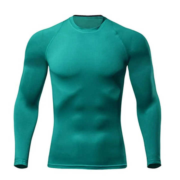 เสื้อรัดรูปแขนยาวของผู้ชายเสื้อรัดรูปผ้าระบายเร็วแห้งเร็วเสื้อผ้าสำหรับฝึกซ้อมเสื้อรัดรูปสำหรับใส่ไปยิมโลโก้ได้ตามต้องการ