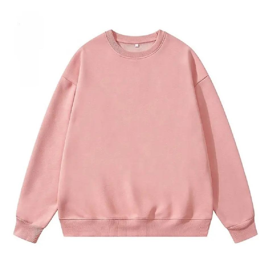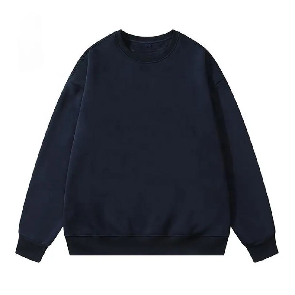 เสื้อสเวตเตอร์คอตตอนคอกลมของผู้ชายทรงโอเวอร์ไซซ์เสื้อครอปแบบสตรีทแวร์ผ้าคอตตอนไม่ทอสีพื้นสำหรับฤดูหนาวโลโก้ออกแบบได้ตามต้องการ