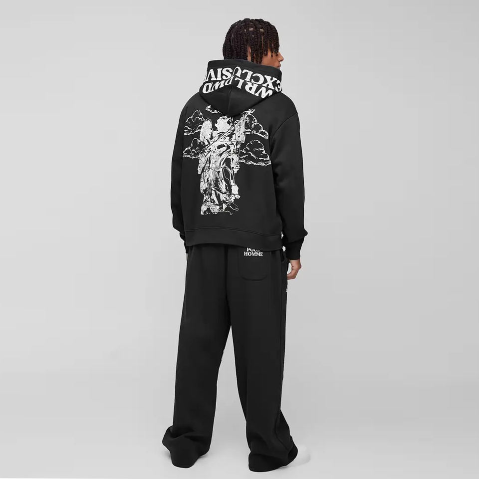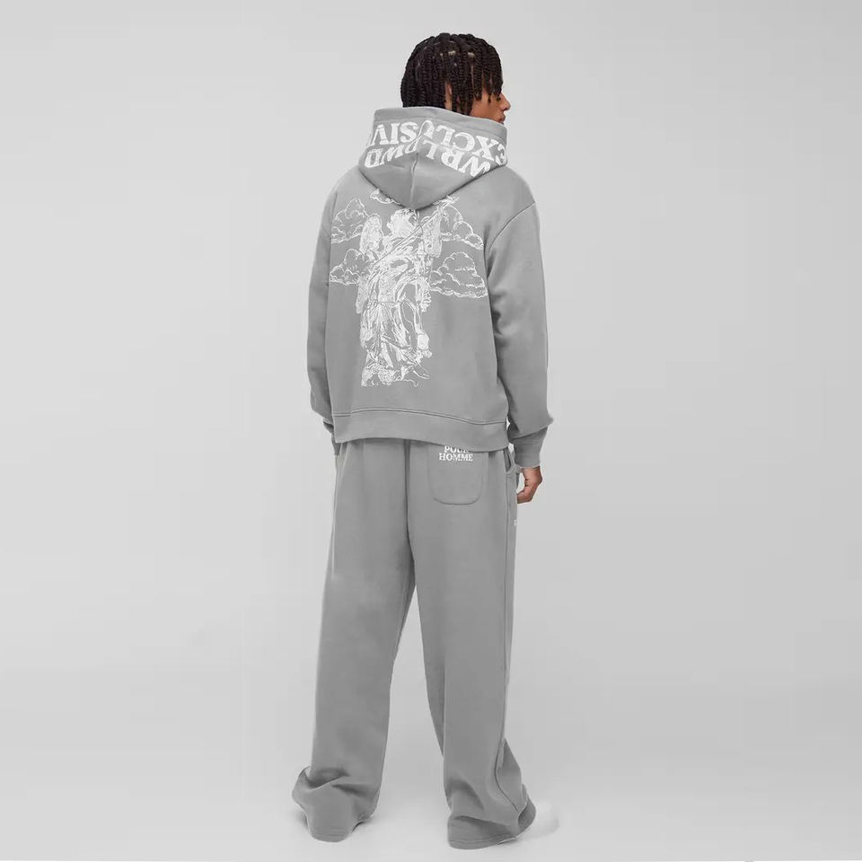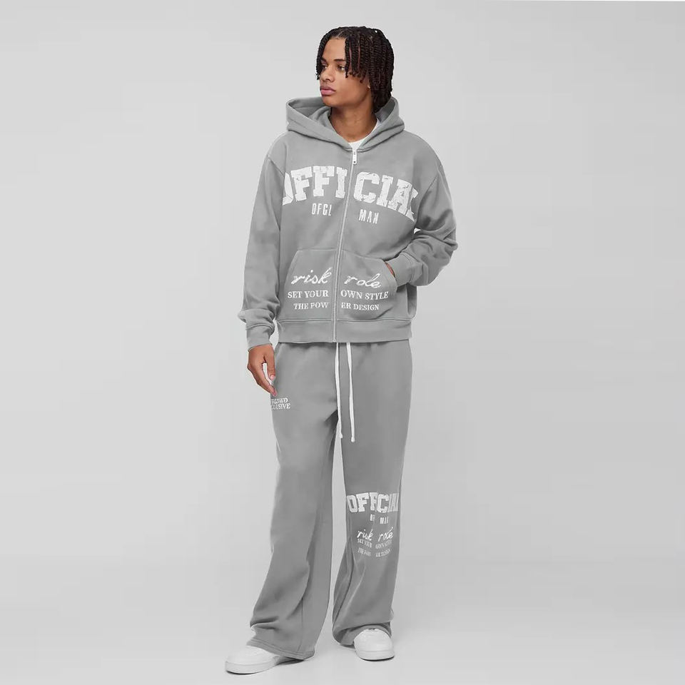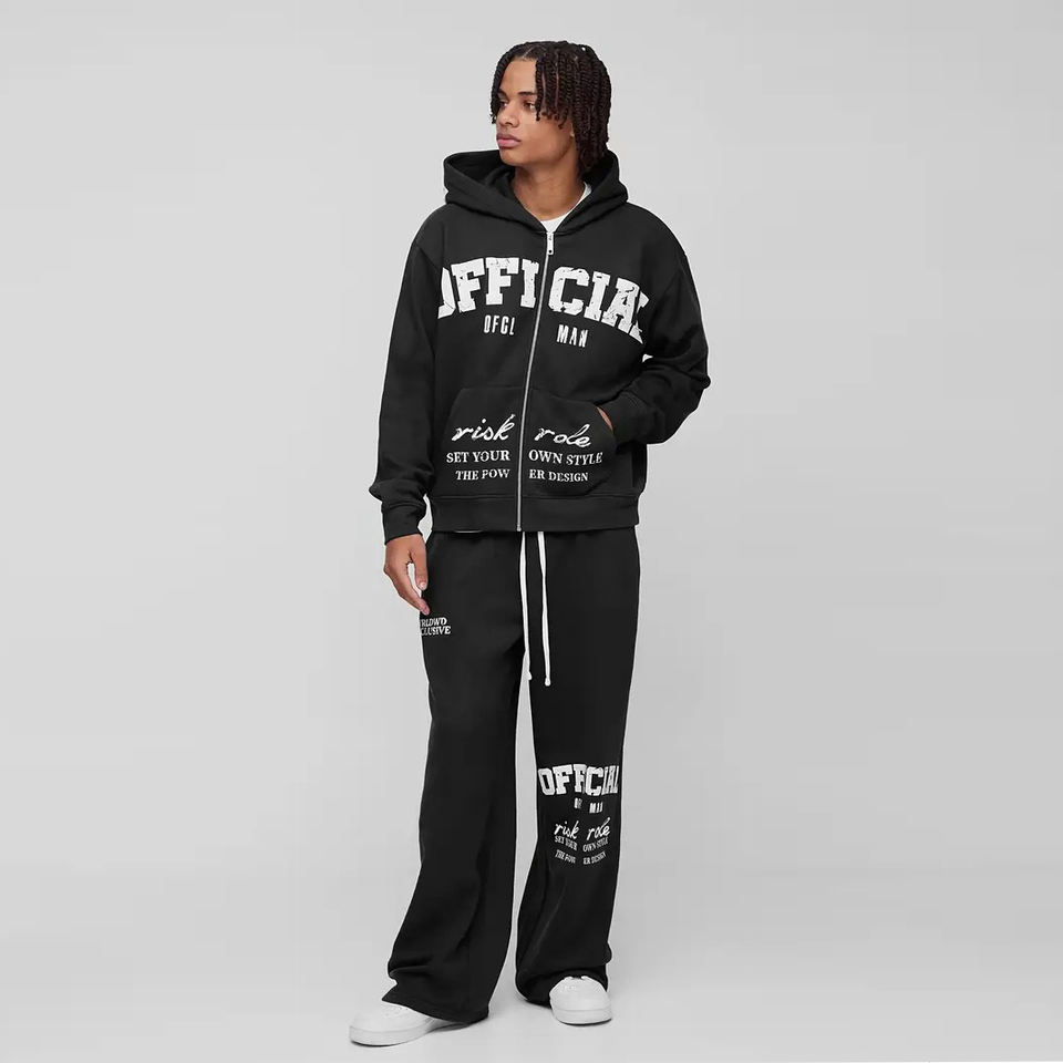 ชุดวอร์มมีฮู้ดแบบมีซิปสำหรับผู้ชายกางเกงวิ่งแนวสตรีทมีเทคนิคพิมพ์ลายโลโก้แบบกำหนดเอง
