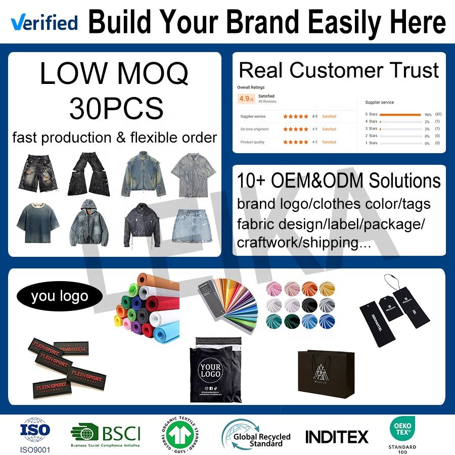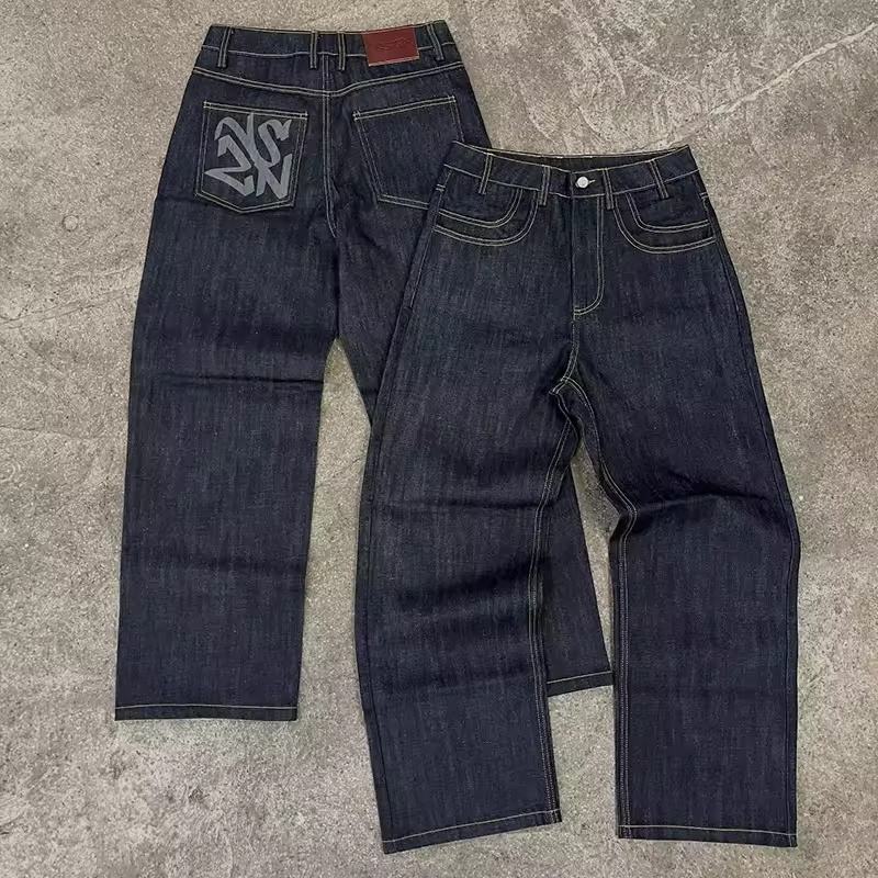 กางเกงยีนส์ทรงกระบอกขาตรงสีดำดิบสไตล์วินเทจสำหรับผู้ชาย แต่งโลโก้แบบกำหนดเอง ล้างสีแบบแอซิด ขอบรุ่ย ขาดเซอร์ๆ เอวกลาง สตรีทแวร์