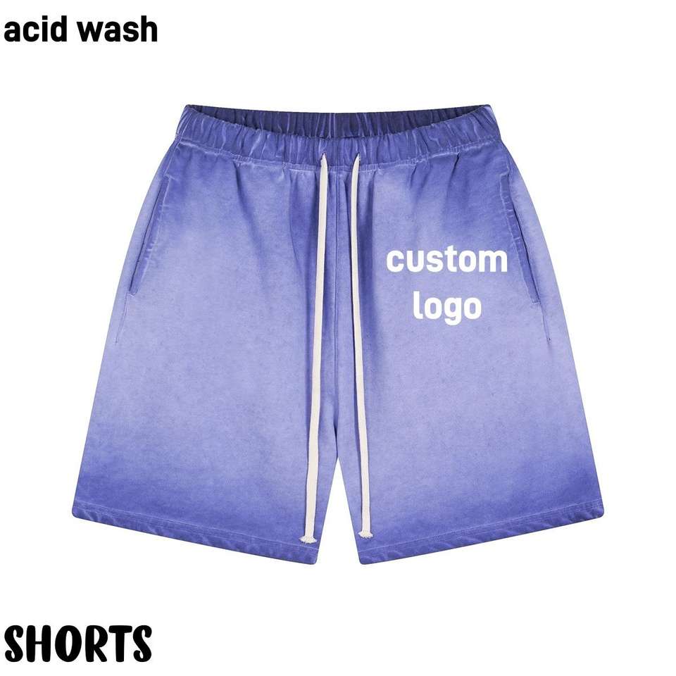 กางเกงขาสั้นผู้ชายผ้าฝ้าย100% ลำลองมีเชือกผูกระบายอากาศแบบวินเทจสีซีดจางลงจากกรด430gsm โลโก้ตามสั่ง