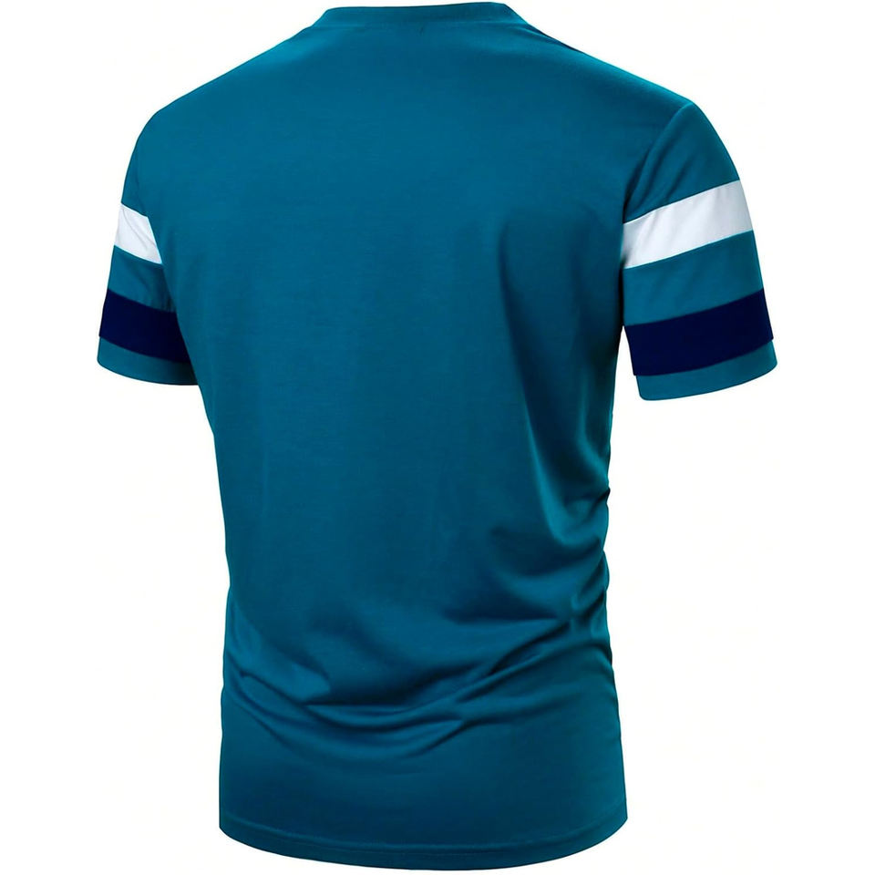 เสื้อยืดลายทางผู้ชาย พิมพ์โลโก้ได้ แขนสั้น สีตัดต่อ ผ้าฝ้าย ระบายอากาศดี แฟชั่นฤดูร้อน ทรงเข้ารูป