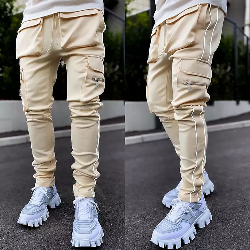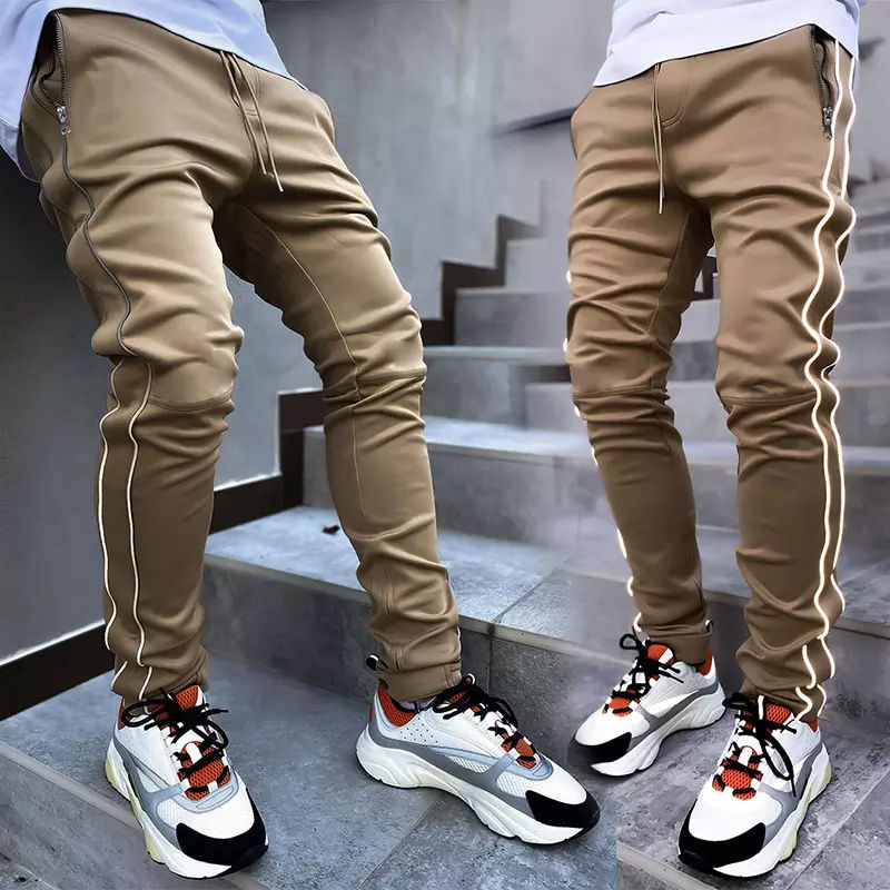 กางเกงวอร์มผู้ชายสะท้อนแสงผ้าโพลีเอสเตอร์แบบลำลองมีกระเป๋าข้างใส่ทำงานโลโก้ออกแบบได้ตามต้องการ
