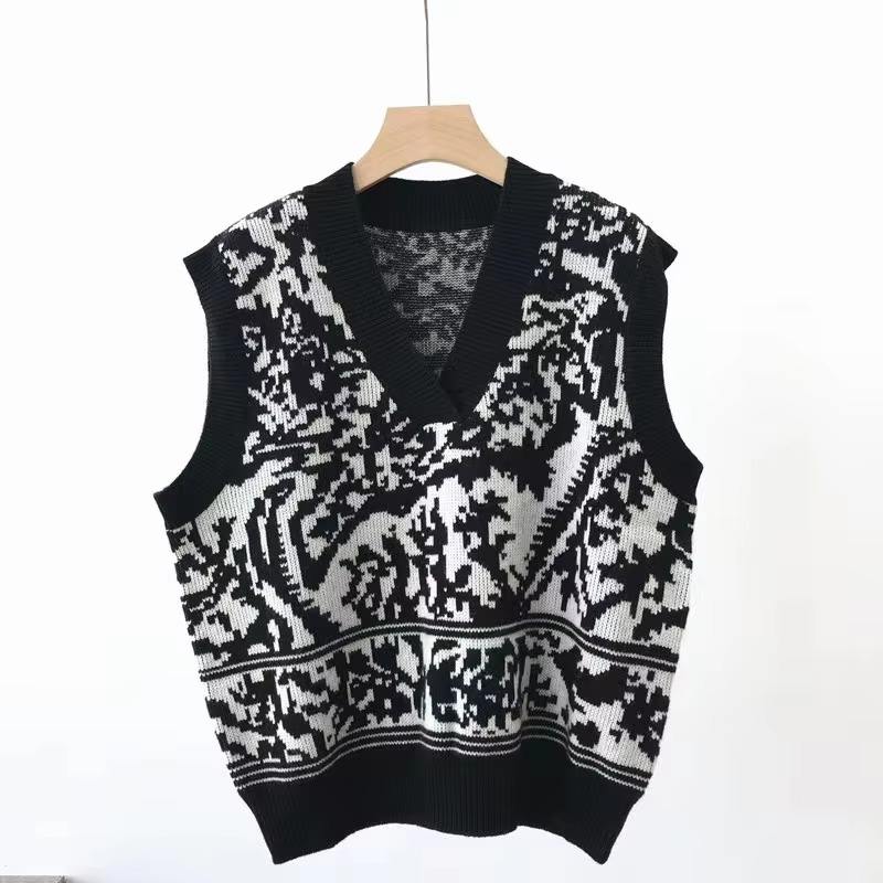 เสื้อกั๊กถักคอวีผู้ชายแบบลำลอง สกรีนโลโก้ได้