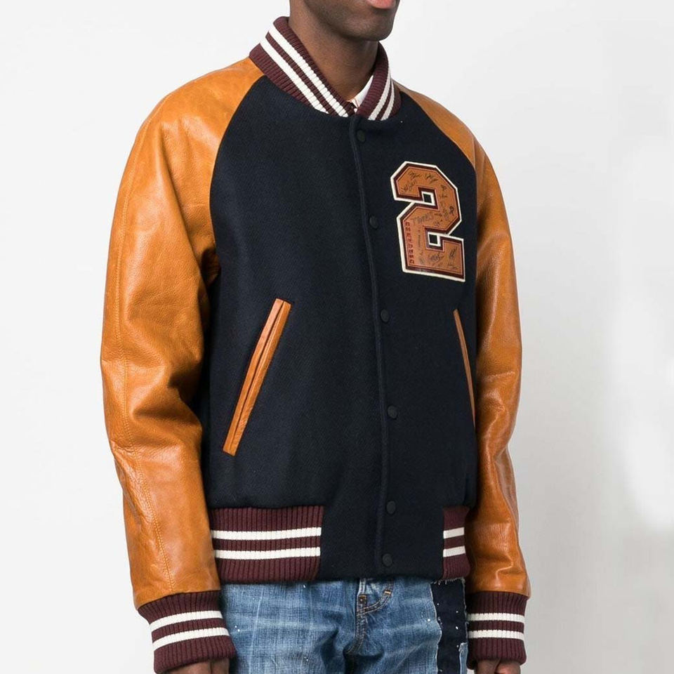 เสื้อแจ็กเก็ตเบสบอลสำหรับผู้ชายเสื้อแจ็กเก็ตเบสบอลแขนเสื้อหนังมีตัวอักษรพิมพ์โลโก้ตามสั่งสำหรับฤดูหนาว