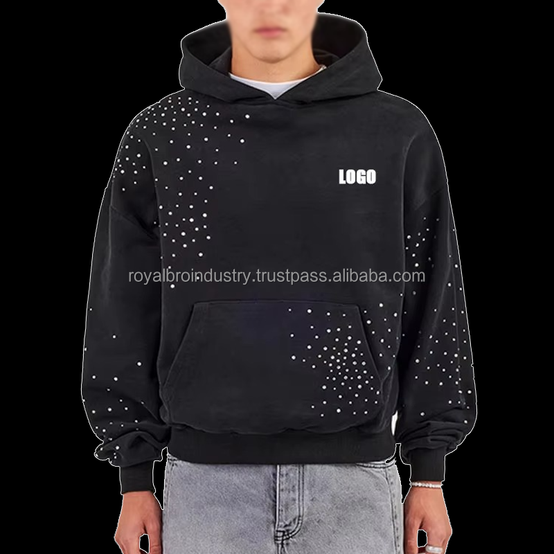 เสื้อผู้ชายสไตล์โกธิคสำหรับฤดูหนาว ผ้าฝ้าย 100% 450 แกรม ทรงครอป ทรงบ็อกซี่ ปกติ กระเป๋าปัก ผ่านกรรมวิธีการฟอกสีแบบแอซิด โลโก้สั่งทำพิเศษ ผ้าหนา