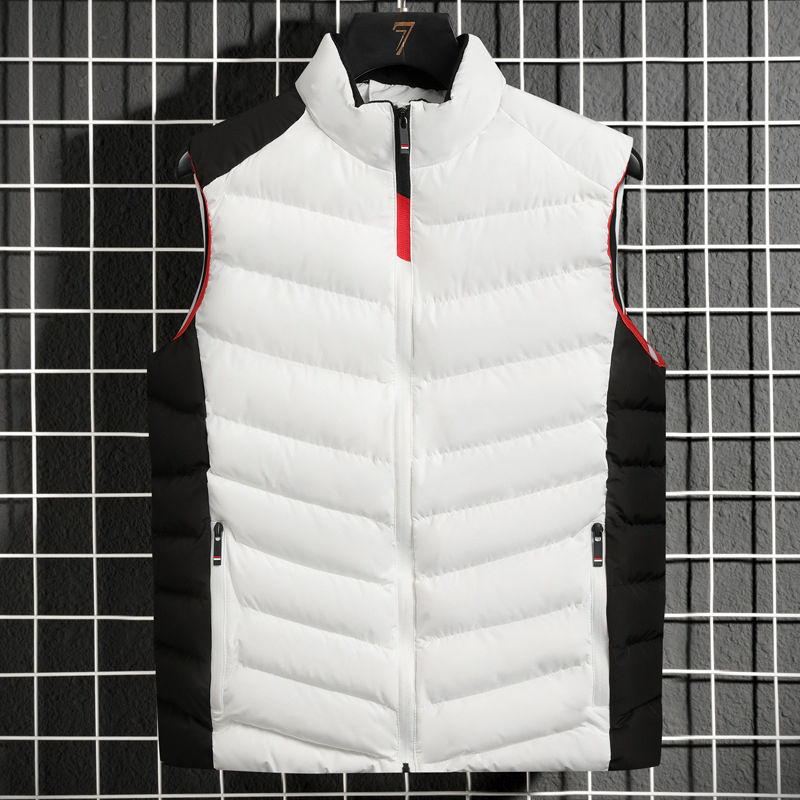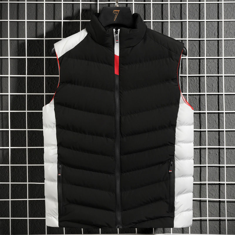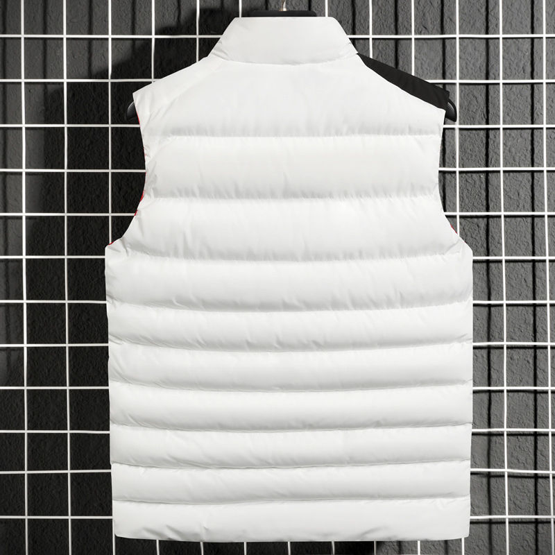 เสื้อกั๊กพัฟเฟอร์ผู้ชายแบบไม่มีแขนสำหรับฤดูหนาว โลโก้สั่งทำได้ กันน้ำ กันลม ระบายอากาศได้ดี แบบกลับด้านได้ มีกระเป๋าหลายช่อง