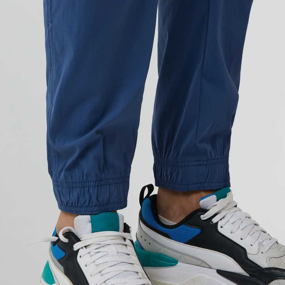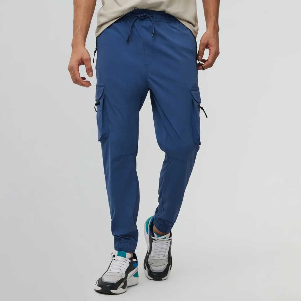 กางเกงจ็อกเกอร์ผู้ชายสีน้ำเงินอีลแบบแห้งเร็วพิมพ์โลโก้ตามสั่ง ระบายอากาศได้ดี มีกระเป๋าข้างแบบมีซิปและกระเป๋าหลัง