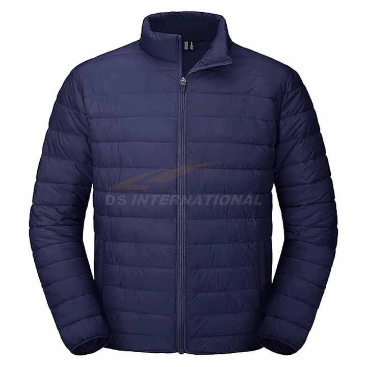 แจ็คเก็ตขนเป็ดน้ำหนักเบาสำหรับผู้ชายเสื้อโค้ทกันน้ำกันลมมีคอแบบตั้งซิปเต็มแพ็คโลโก้ได้ตามต้องการ